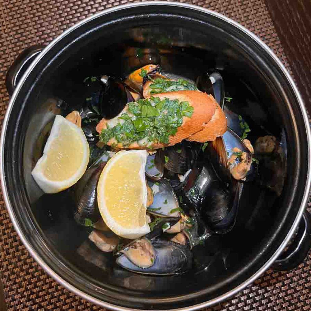 Мидии в белом вине с чесноком/в сливочном соусе/в соусе том ям