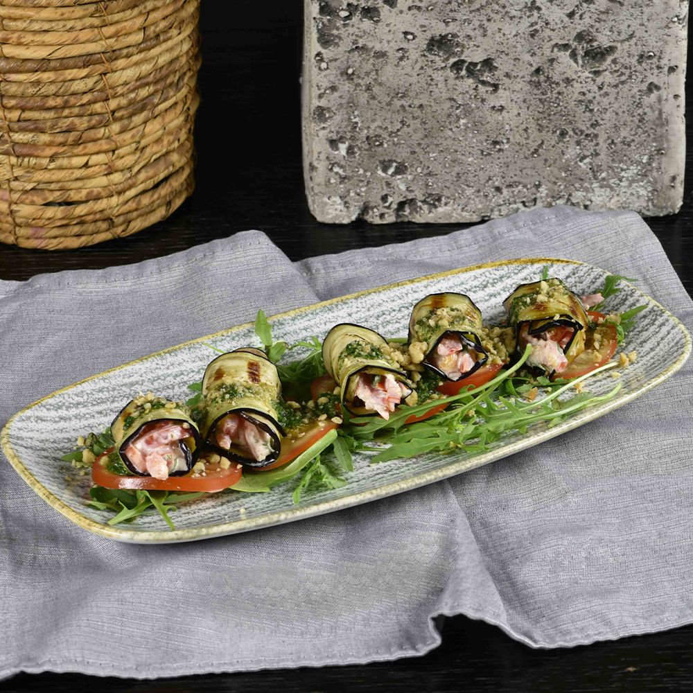 Рулетики из баклажан с ореховой начинкой и соусом из кинзы