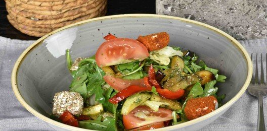 Салат с запеченным перцем с начинкой из баклажана и сыром